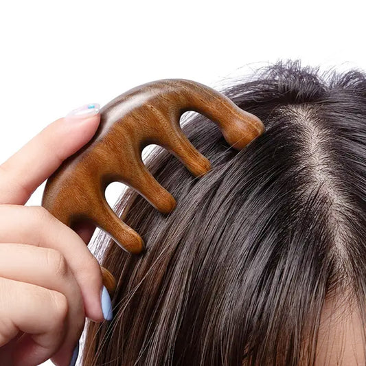 HarmonyTouch Five-Finger Massage Comb Sandalwood for Scalp, Neck, Body & Face Massage